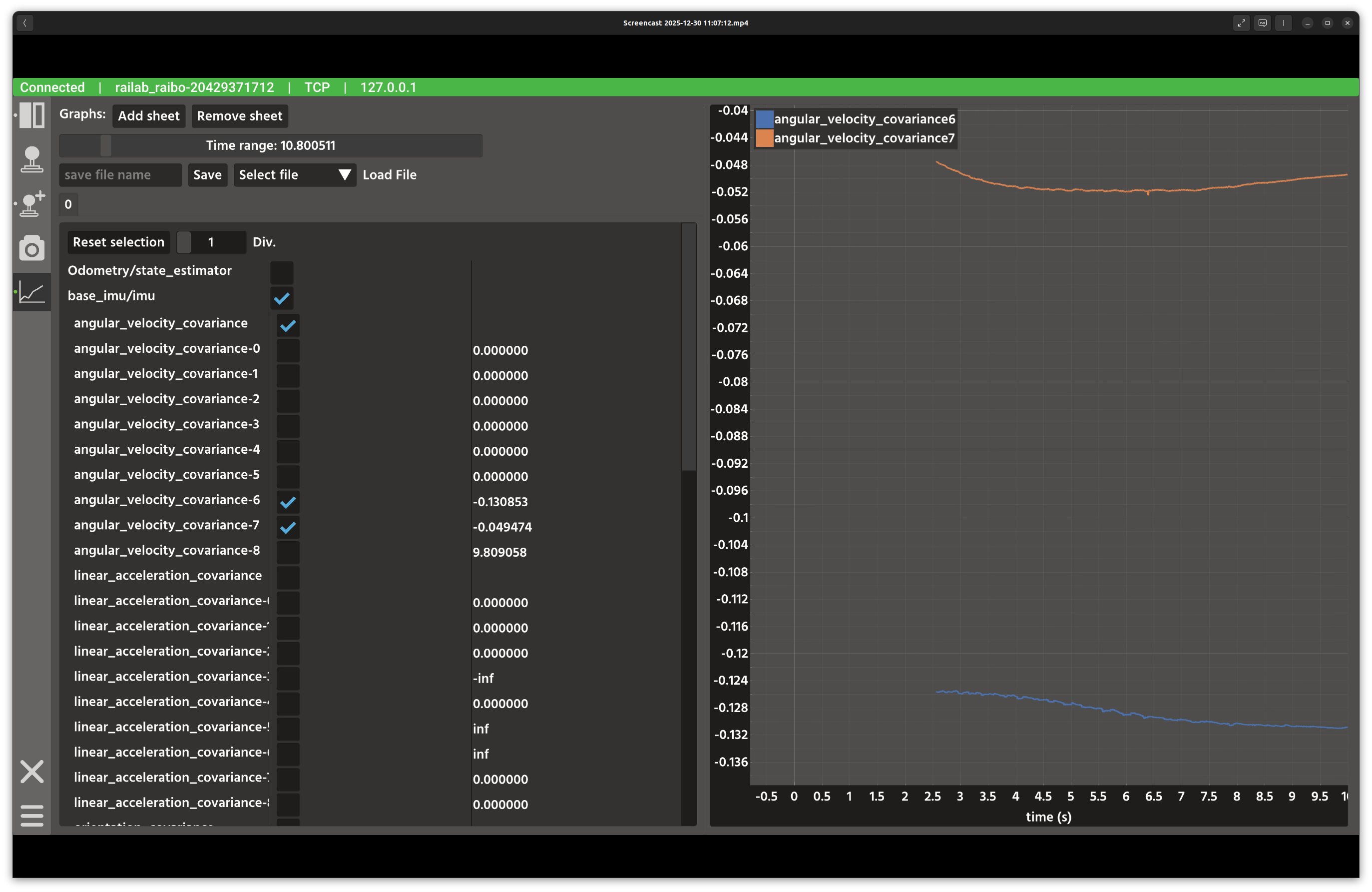 In the screenshot above, the left column is used to select topics and fields, while the right side renders live plots. Tabs allow multiple plotting sheets.