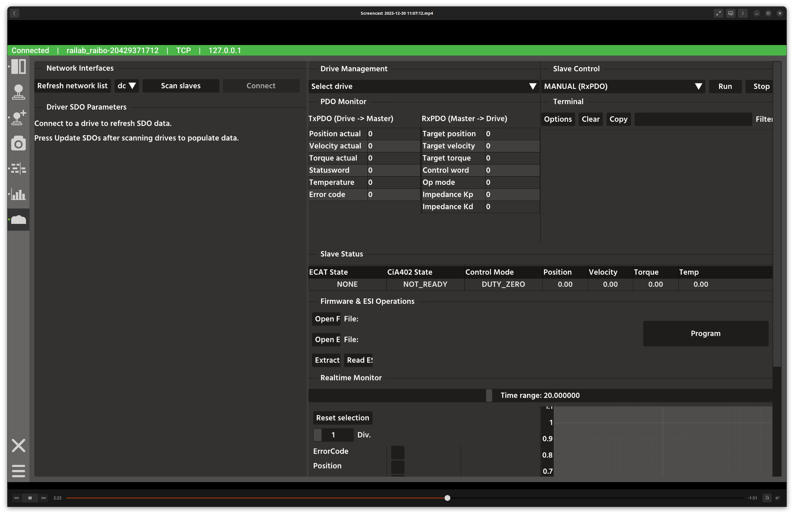 Realtime Monitor: plots of target/position/velocity/torque/temperature.